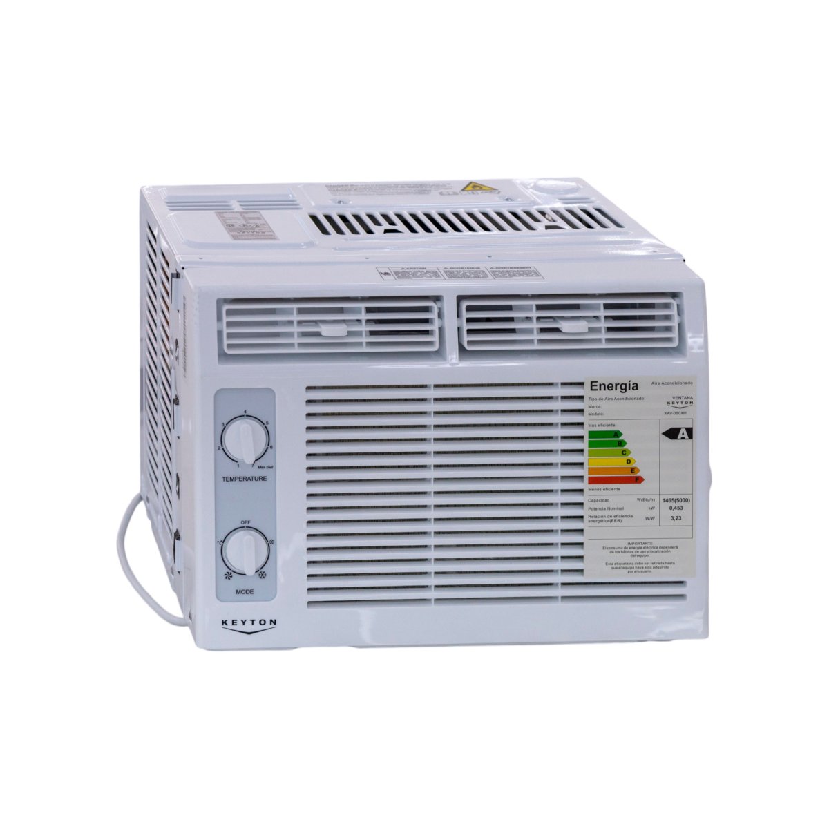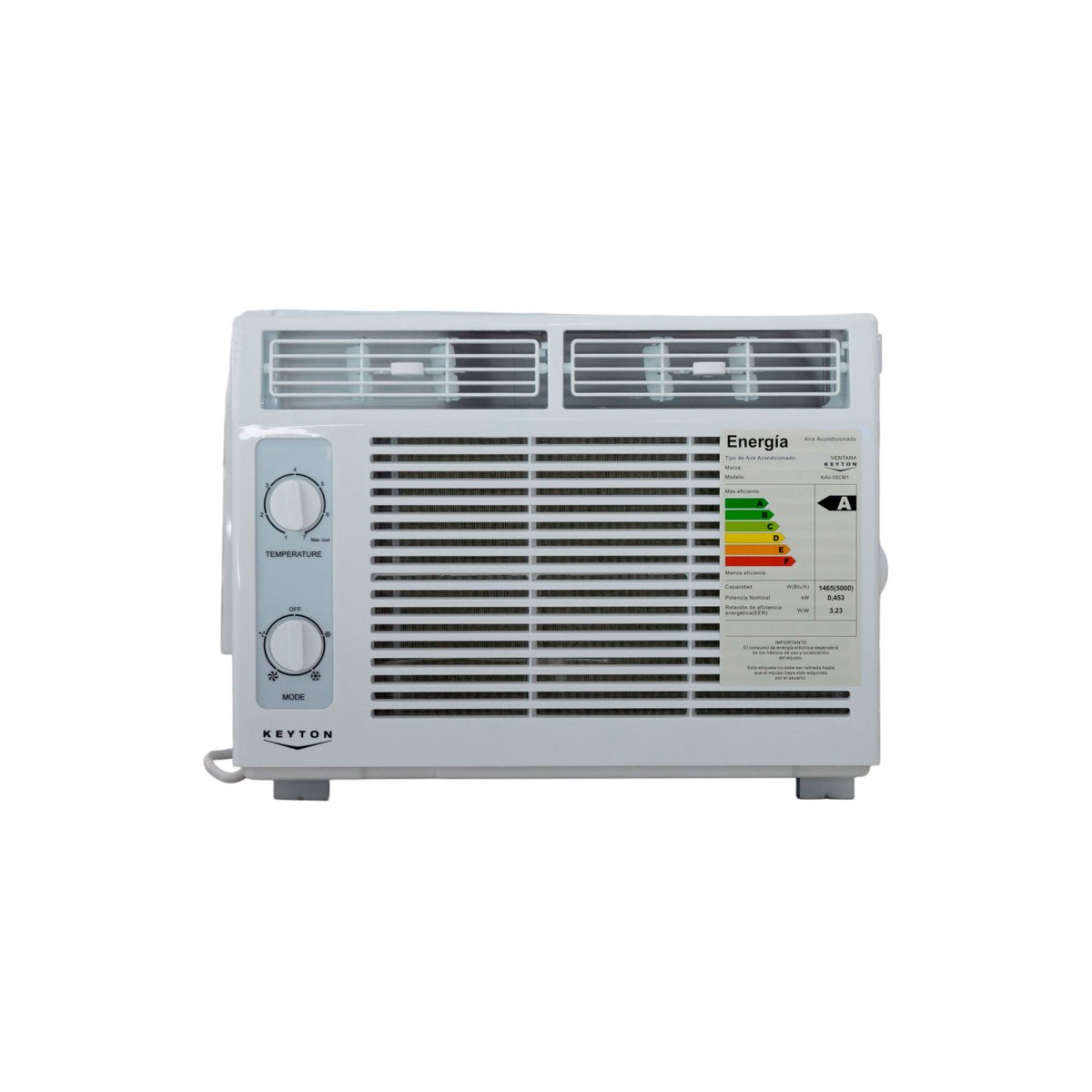 Aire acondicionado de ventana con control analógico de 5.000 BTU.