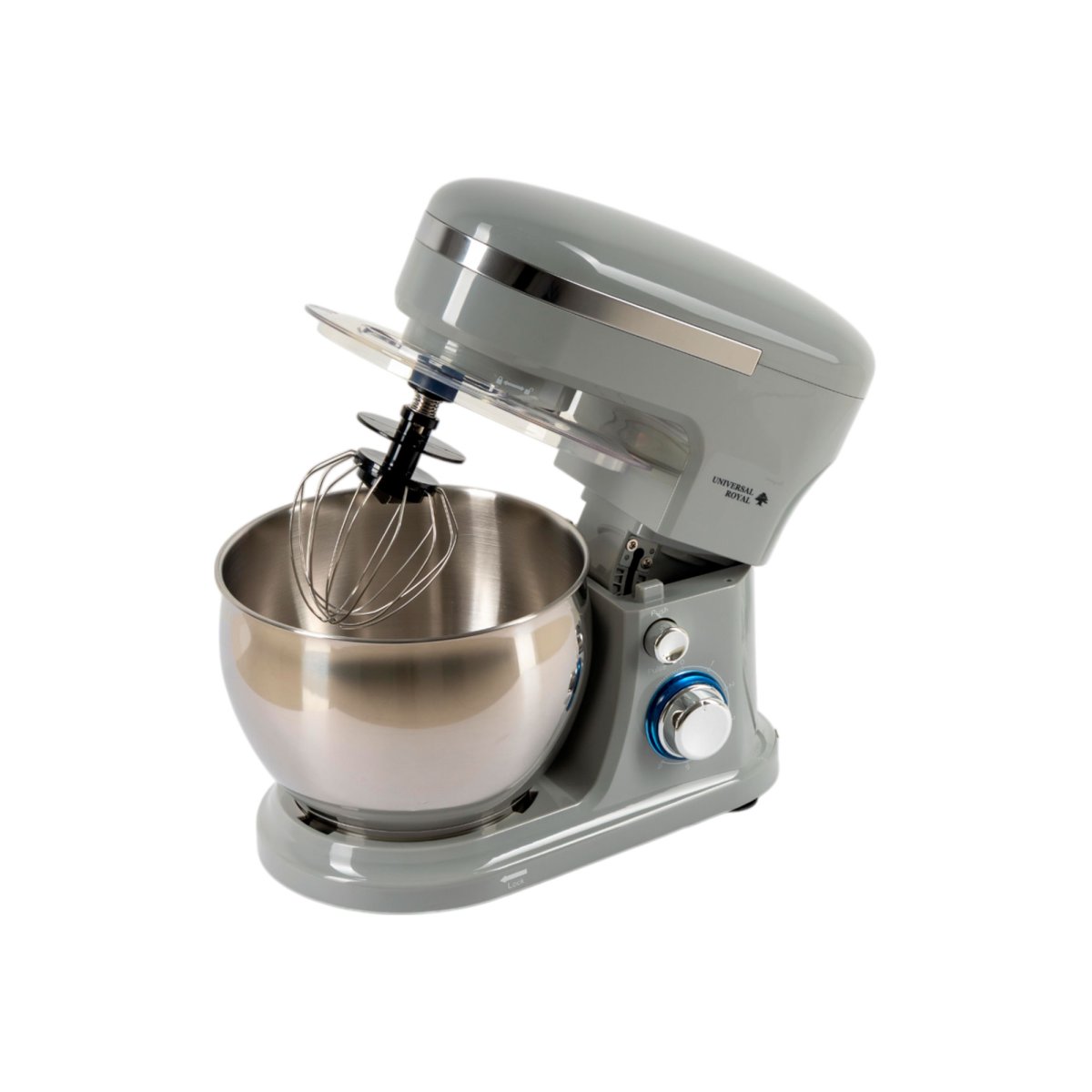 Batidora de pedestal de 6 velocidades con un potencia de 1000 Watts y tazón de acero inoxidable.