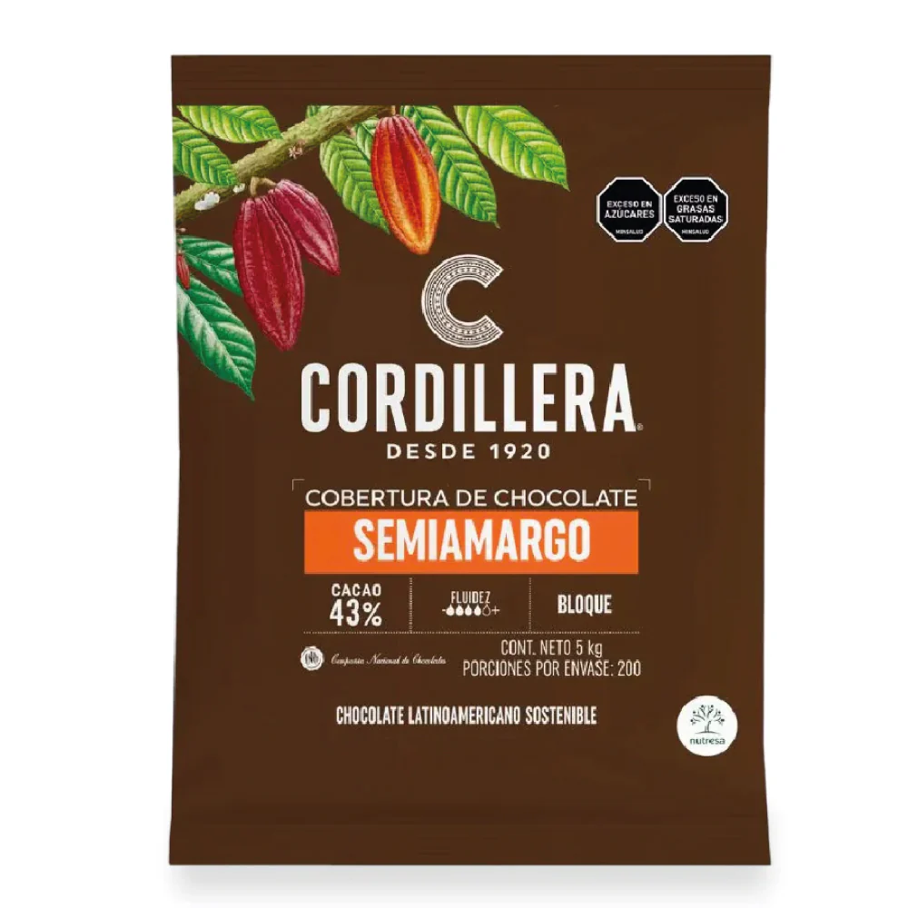 Cobertura de Chocolate real al 43%, que se destaca por su balance entre sabor intenso a chocolate y notas lácteas y dulces.