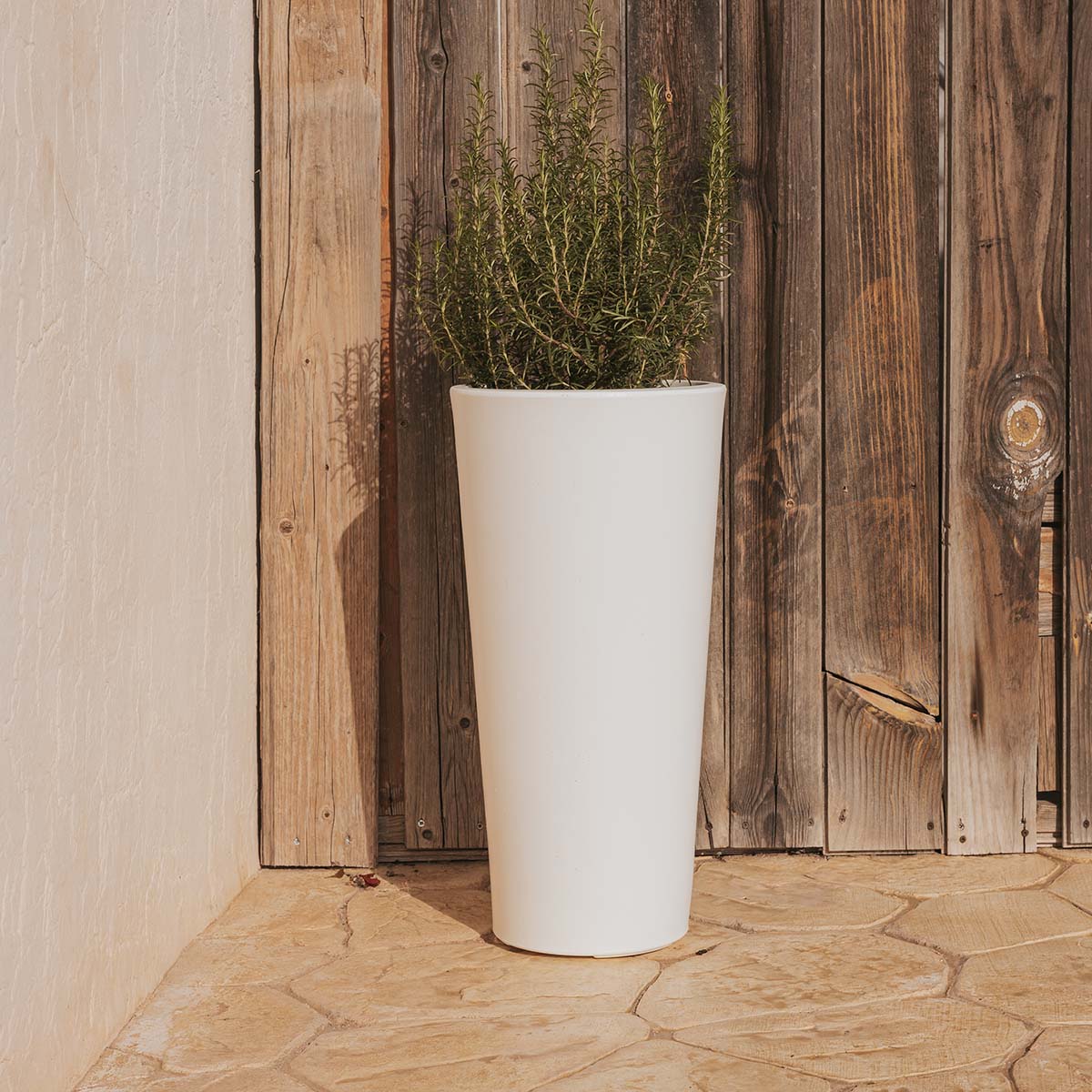 FICUS (ø29×59 cm): Es una maceta cilíndrica con una amplia base de plantación. Su altura y ligereza te permite tener una maceta de gran tamaño con un diseño que combina con tus espacios a decorar. Disponible en varios colores.