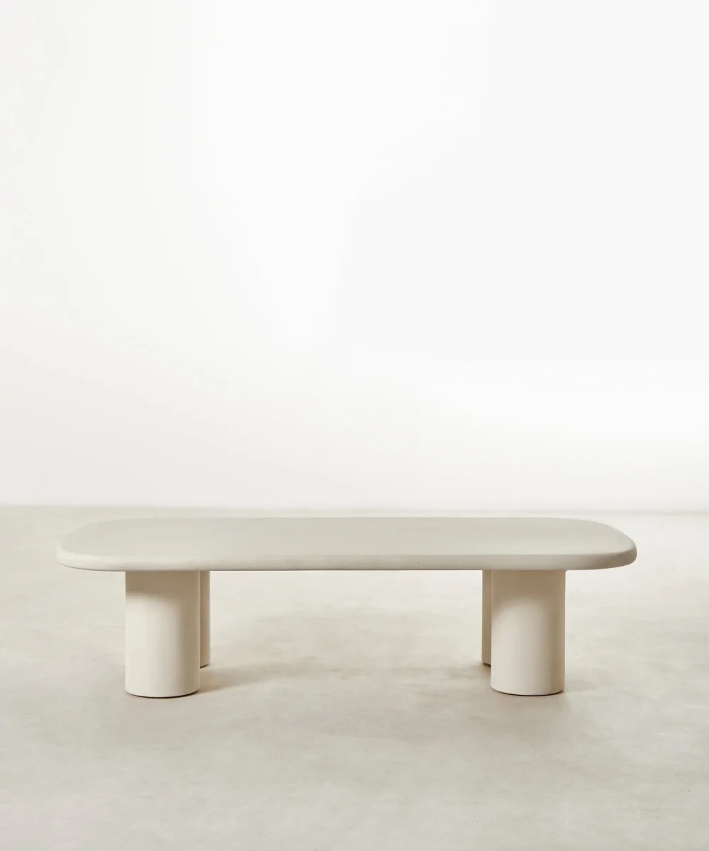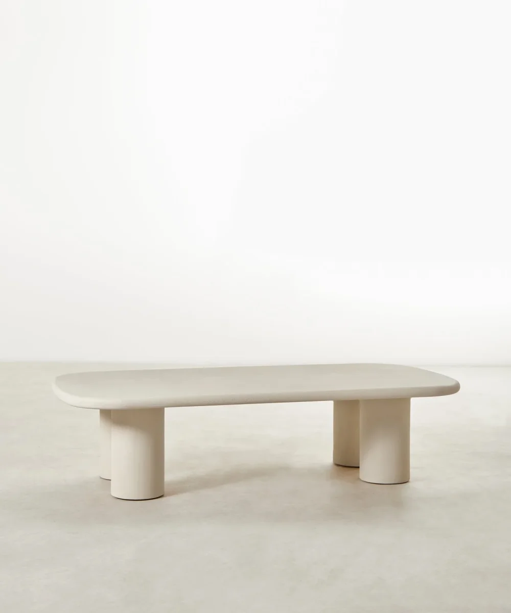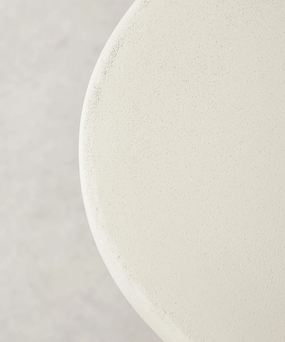 La mesa de centro Sira tiene un diseño sencillo y elegante que encaja fácilmente en cualquier espacio moderno. Está fabricada en microcemento de color blanco roto. Es ideal para salones de estilo minimalista, mediterráneo o contemporáneo.