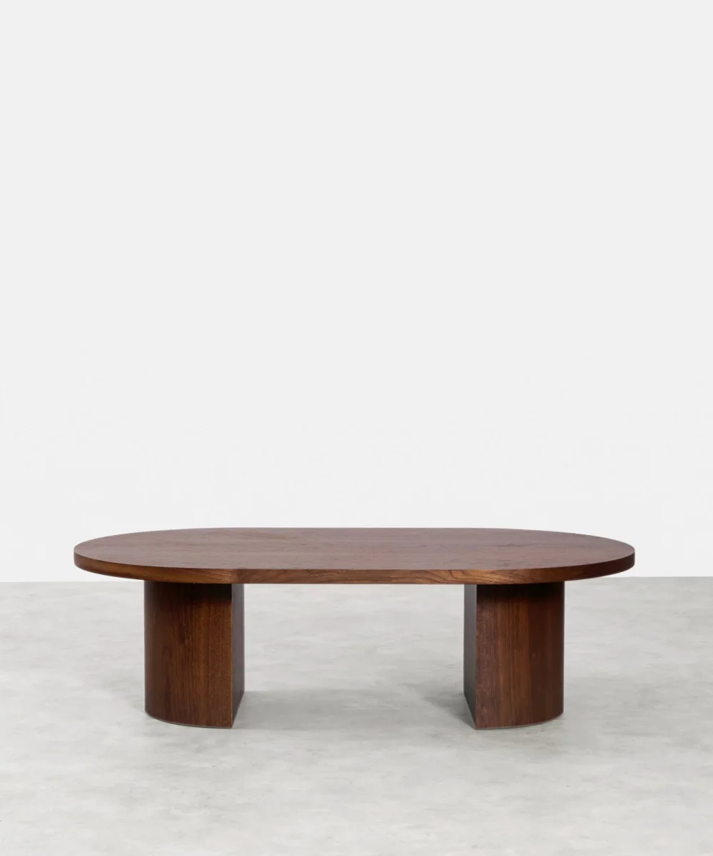 Está fabricada en madera. Además, cuenta con una estructura sólida y dos patas de forma de media circunferencia que le aportan carácter y estabilidad.