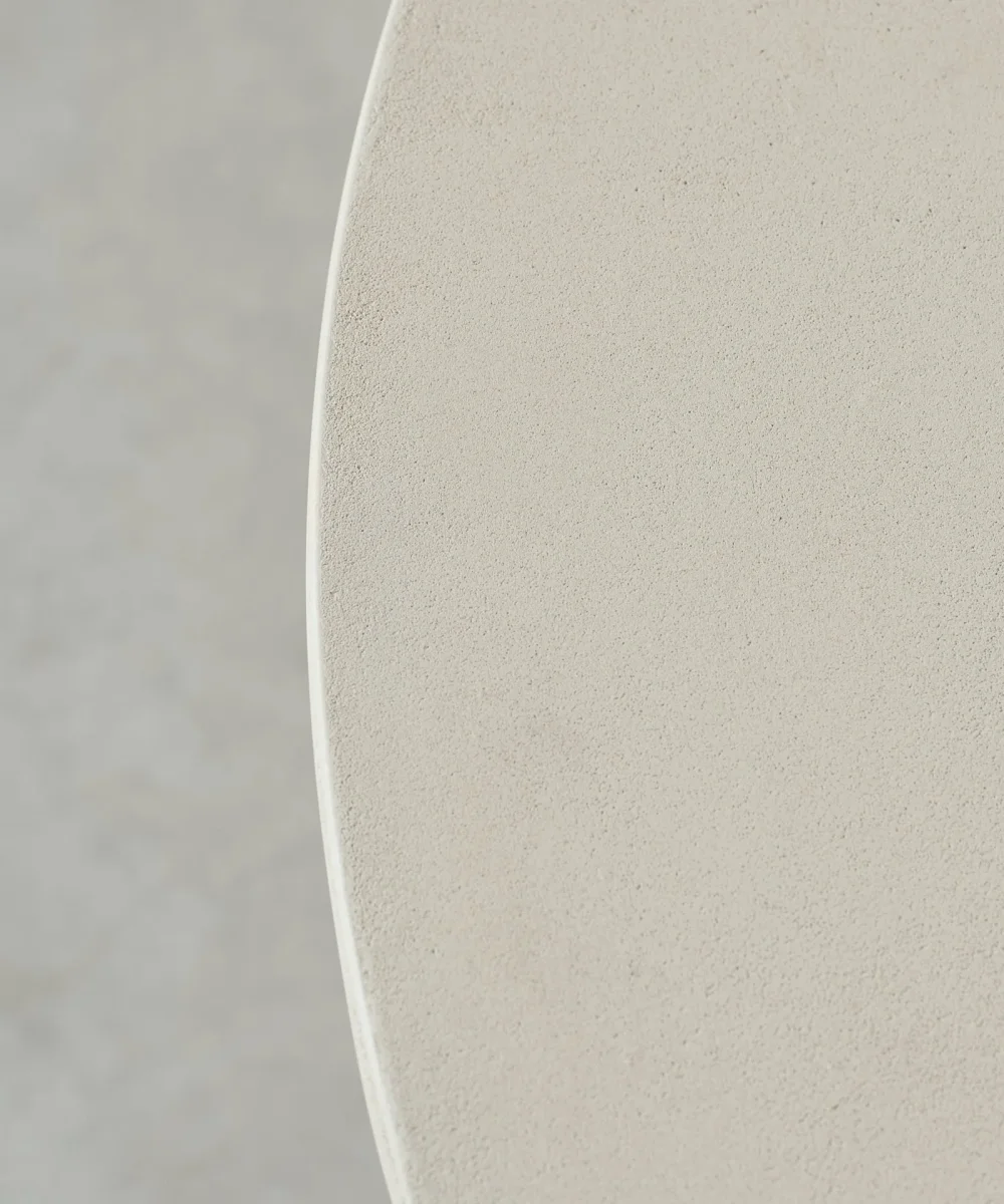 Está fabricada de forma artesanal en microcemento, lo que aporta un acabado único y de gran calidad. Perfecta para salones o salas de reuniones que buscan una pieza atemporal y con personalidad.