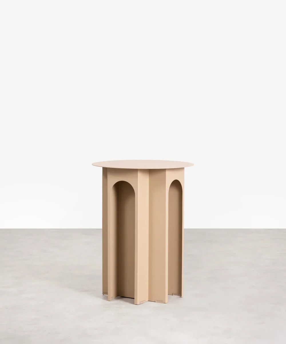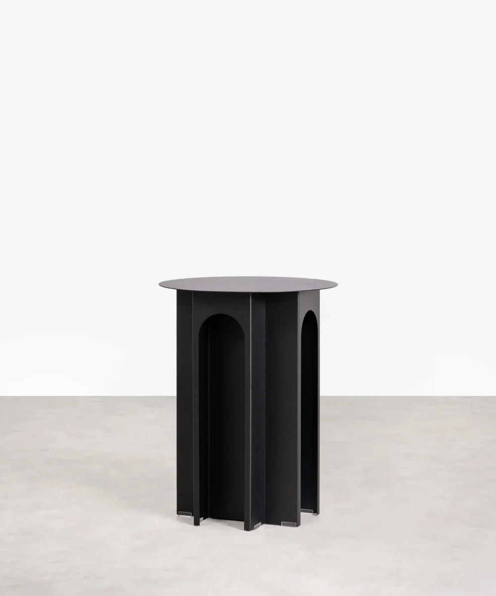 La mesita auxiliar Pisa es una pieza de diseño que destaca por su estructura arquitectónica y elegante. Su base está compuesta por formas curvas y arcos que le otorgan un aire sofisticado y moderno.