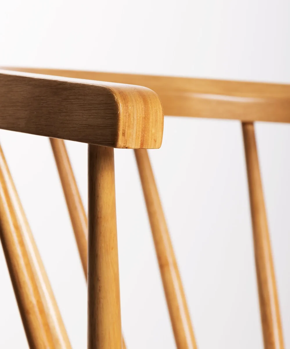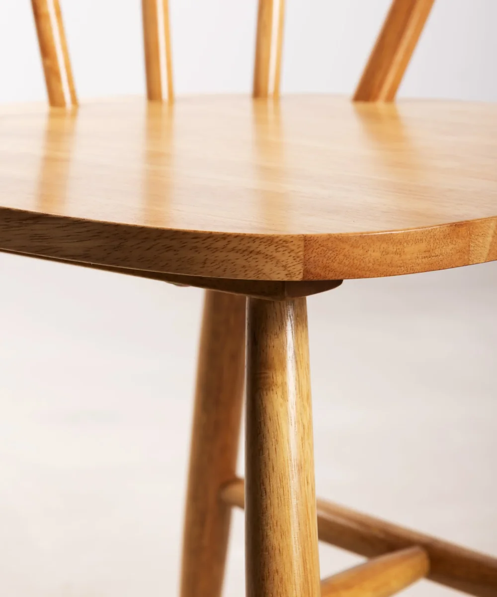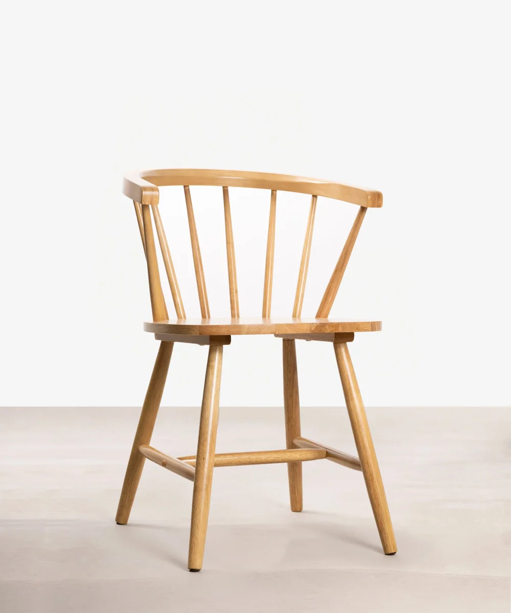 Las Sillas Sena Arms, con su inconfundible diseño retro, se convertirán en las protagonistas indiscutibles de tu comedor. Su respaldo con varillas y sus características patas evocan el estilo nórdico de los años 50. La estructura de madera de hevea maciza es ligera y elegante, con cada varilla finamente tallada artesanalmente, resaltando el auténtico carácter de estas sillas.