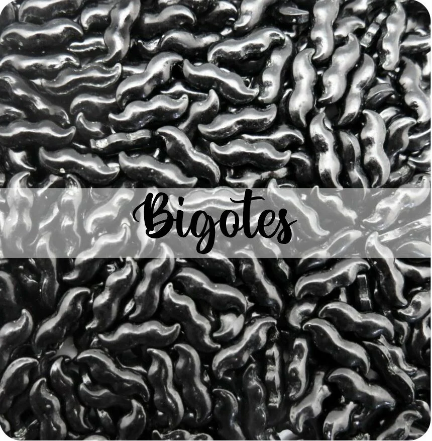 Gragea comestible con forma de bigotes, especiales para decoración de tortas, cupcakes, galletas y una gran variedad de creaciones en bizcochería, pastelería, galletería y heladería.