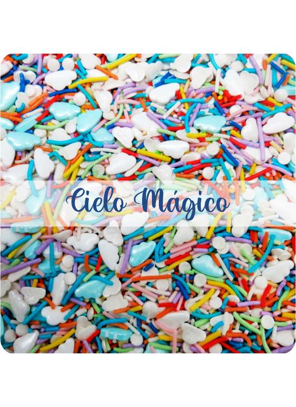 Gragea comestible surtida en forma nubes y jimmies coloridos, especial para decoración de tortas, cupcakes, galletas y una gran variedad de creaciones en bizcochería, pastelería, galletería y heladería.