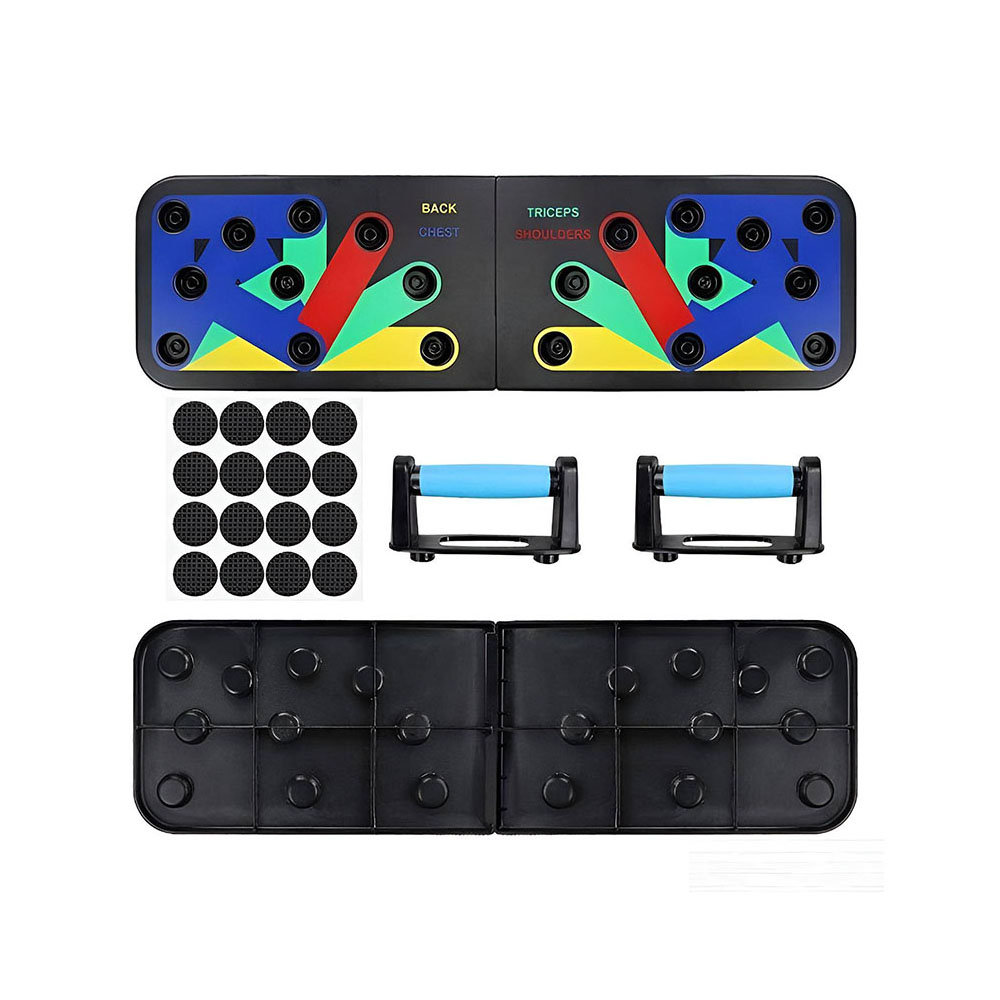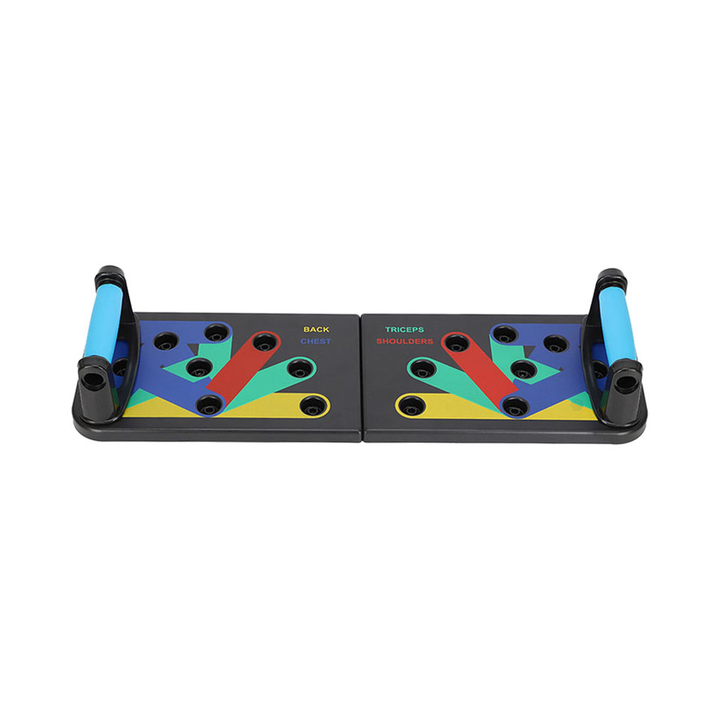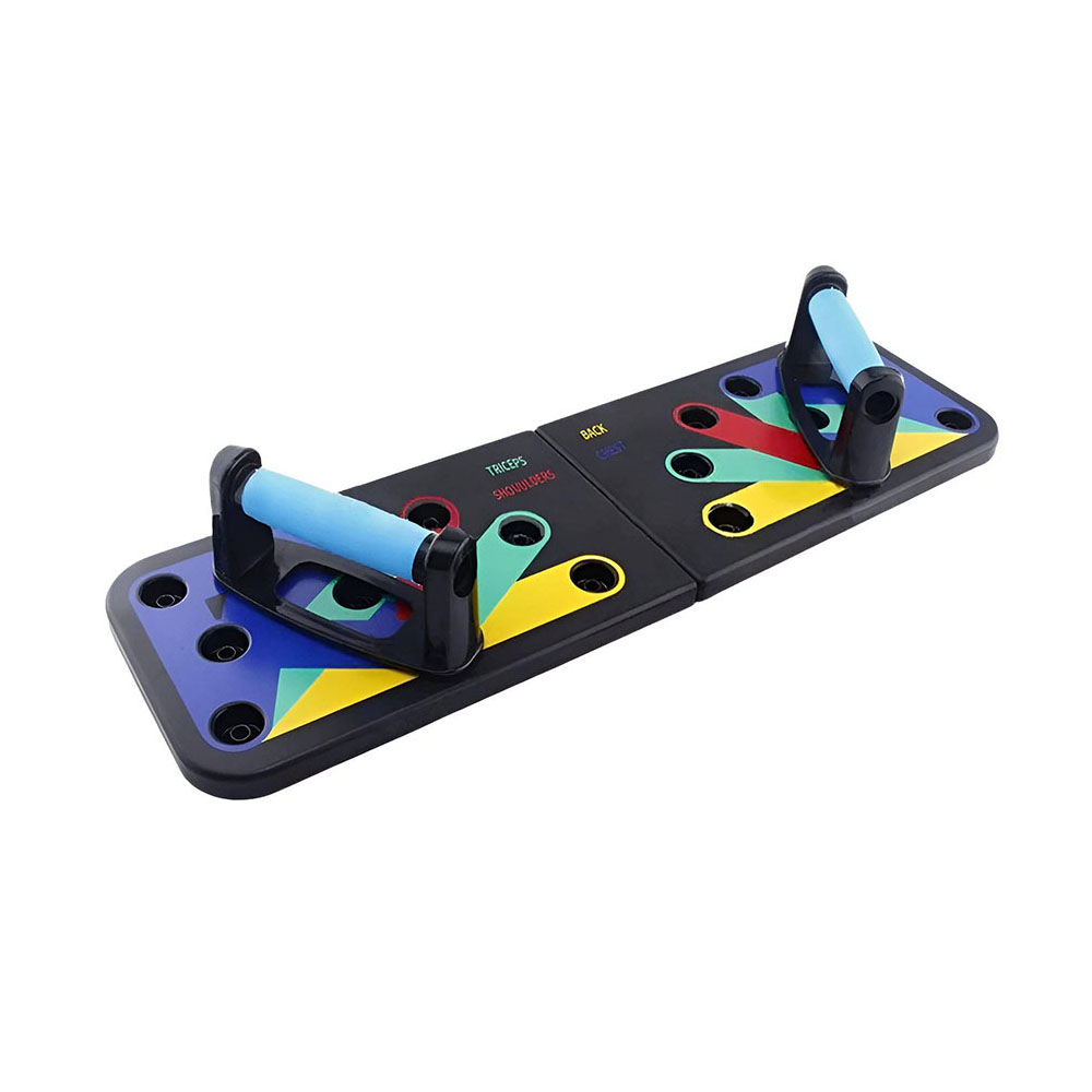 Revolucionaria tabla de flexiones, tiene un diseño multiusos 9 en 1. Con ella podrás esculpir y maximizar tu pecho, hombros, espalda y tríceps. Posee distintos colores orientados específicamente al trabajo de los diferentes grupos musculares. Además es compacto y fácil de transportar, por lo que puedes entrenar donde quieras.