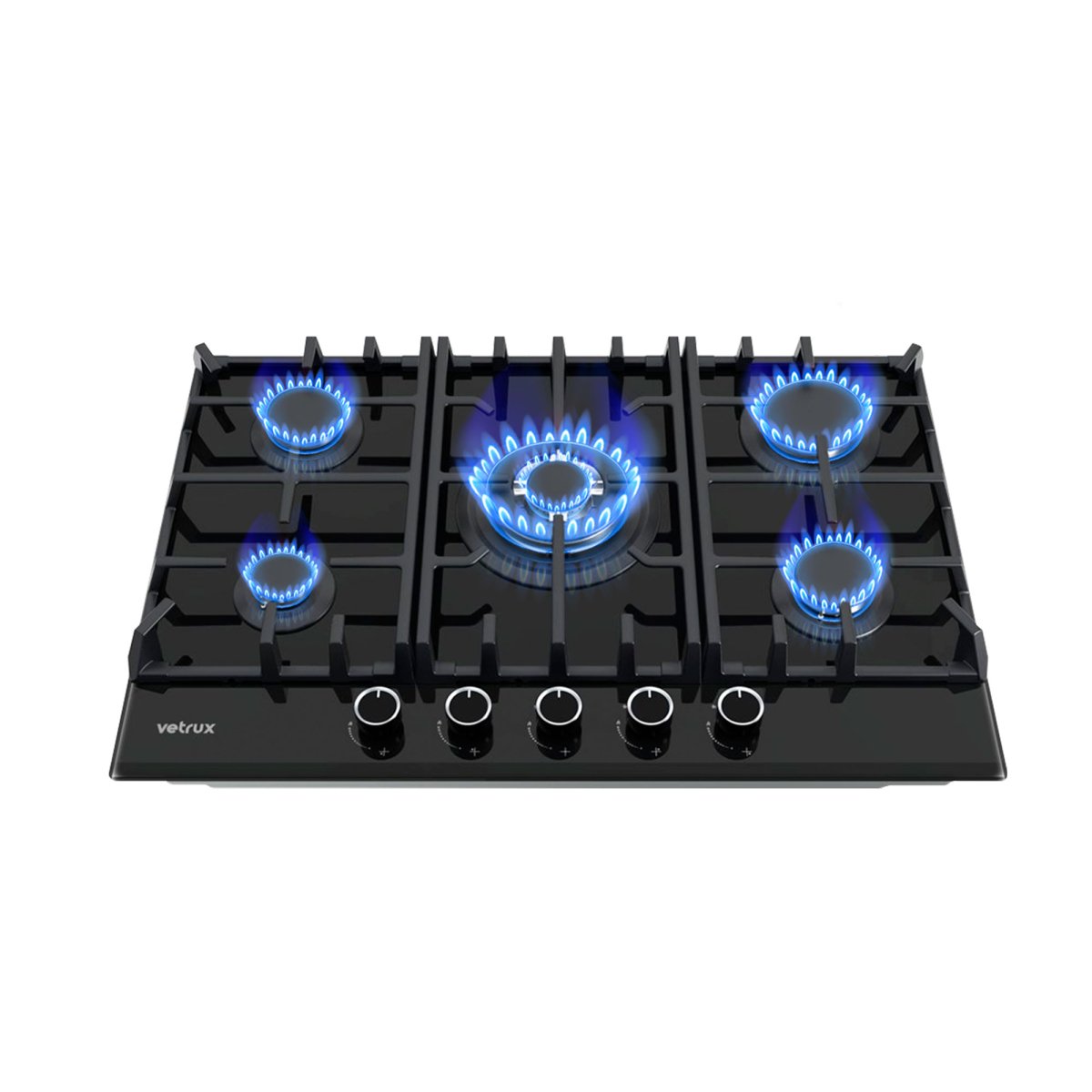 Tope de cocina a gas de cristal templado negro, marca Vetrux.